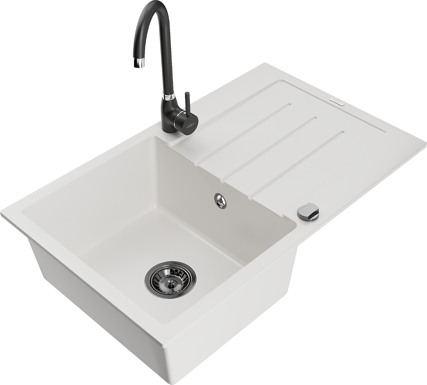 Mexen Bruno Granitspüle 1-beckig mit Abtropffläche und Küchenarmatur Telma, weiß - 6513-20-670200-70
