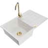 Die Spüle besteht aus hochwertigem Granit. Es ist eine elegante und vor allem praktische Ergänzung zu jeder Küche, unabhängig von ihrem Stil. Hohe Qualität und Granitdauer sorgen für eine langjährige Nutzung.