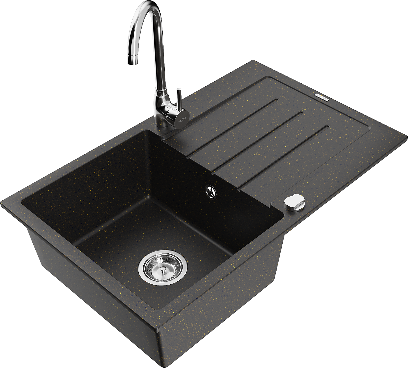 Mexen Bruno Granitspüle 1-Becken mit Abtropfbrett und Küchenarmatur Telma, schwarz/gold - 6513-75-670200-00