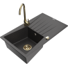 Die Spüle besteht aus hochwertigem Granit. Es ist eine elegante und vor allem praktische Ergänzung zu jeder Küche, unabhängig von ihrem Stil. Hohe Qualität und Granitdauer sorgen für eine langjährige Nutzung.