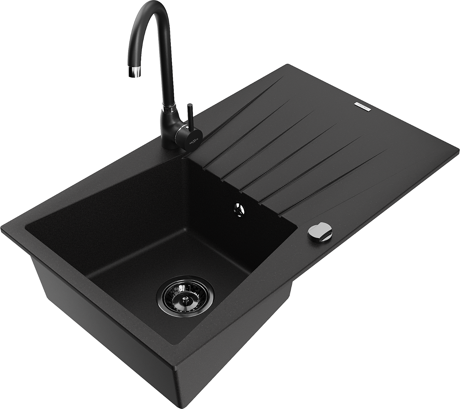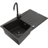 Mexen Cesar Granitspüle 1-beckig mit Abtropffläche und Küchenarmatur Telma, schwarz - 6514-77-670200-70-B