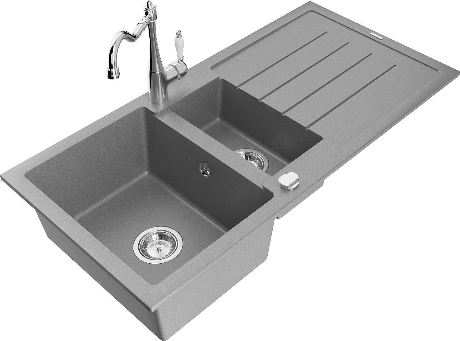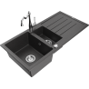 Mexen Andres Granitspüle 1,5-Becken mit Abtropffläche und Küchenarmatur Carla, grau - 6515-71-670700-00