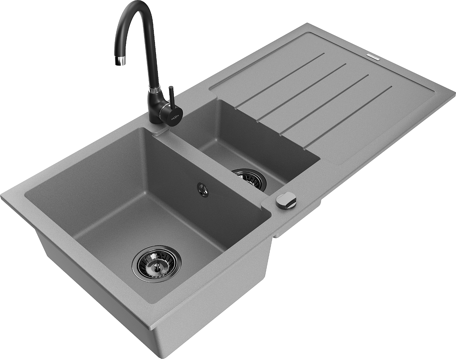 Mexen Andres Granitspüle mit 1,5 Becken und Abtropffläche und Küchenarmatur Telma, grau - 6515-71-670200-70-B