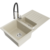 Mexen Matias Granit-Spüle 1,5-Becken mit Abtropffläche und Küchenarmatur Aster, weiß - 6502-20-73450-02