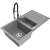 Mexen Matias Granit-Spüle 1,5-Becken mit Ablage und Küchenarmatur Aster, weiß - 6502-20-73450-07