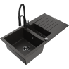 Die Spüle besteht aus hochwertigem Granit. Es ist eine elegante und vor allem praktische Ergänzung zu jeder Küche, unabhängig von ihrem Stil. Hohe Qualität und Granitdauer sorgen für eine langjährige Nutzung.