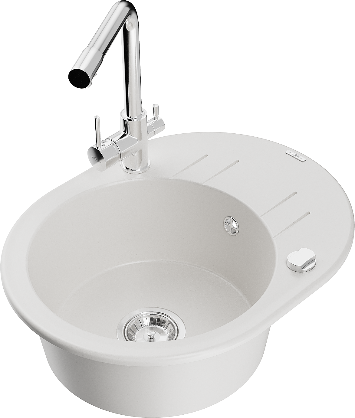 Mexen Kevin Granitspüle 1-beckig mit Abtropffläche und Küchenarmatur Duero, weiß - 6517-20-671600-00
