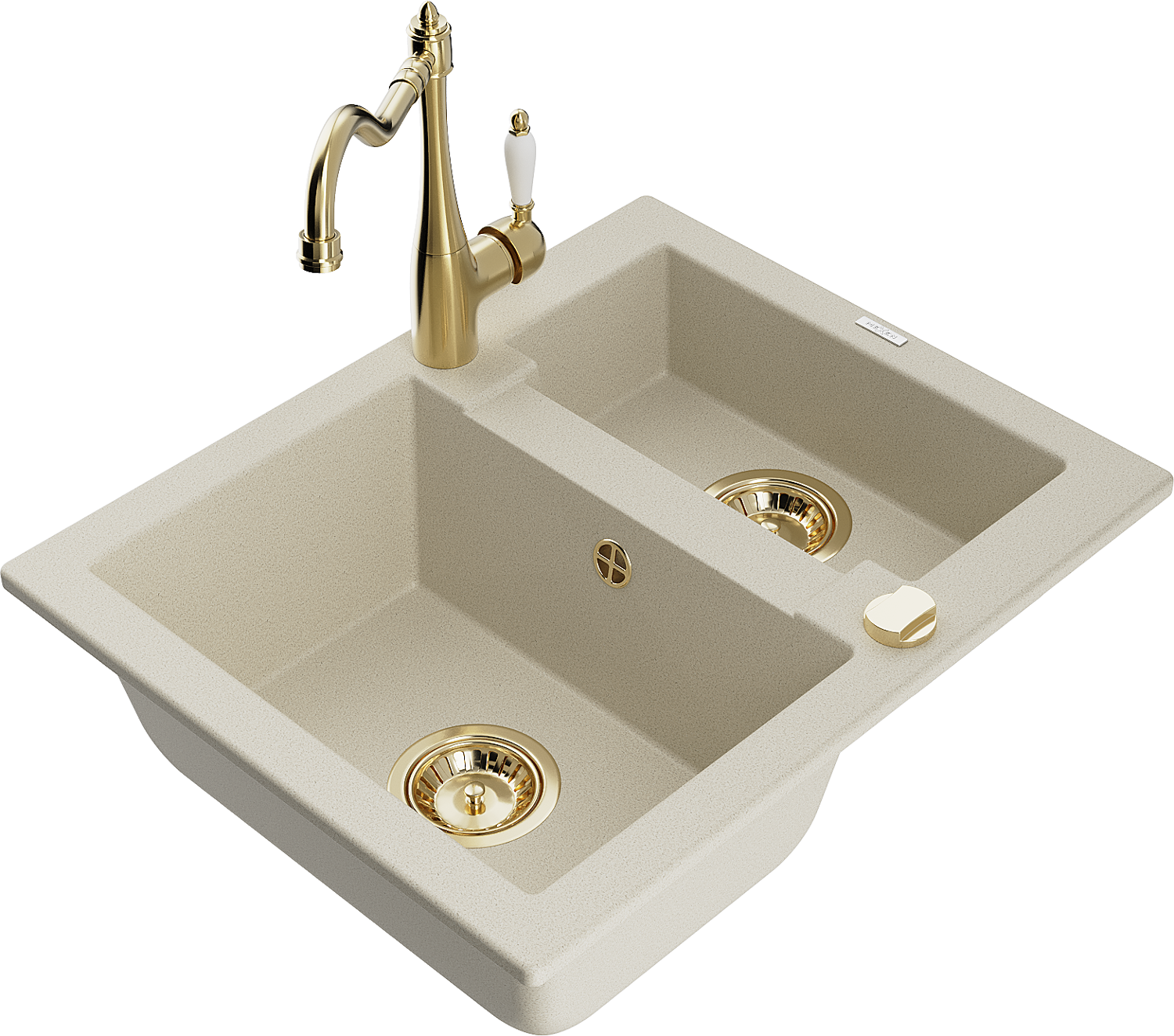 Mexen Carlos Granitspüle 1,5 Kammern mit Küchenarmatur Carla, beige - 6518-69-670700-50