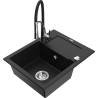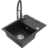 Die Spüle besteht aus hochwertigem Granit. Es ist eine elegante und vor allem praktische Ergänzung zu jeder Küche, unabhängig von ihrem Stil. Hohe Qualität und Granitdauer sorgen für eine langjährige Nutzung.