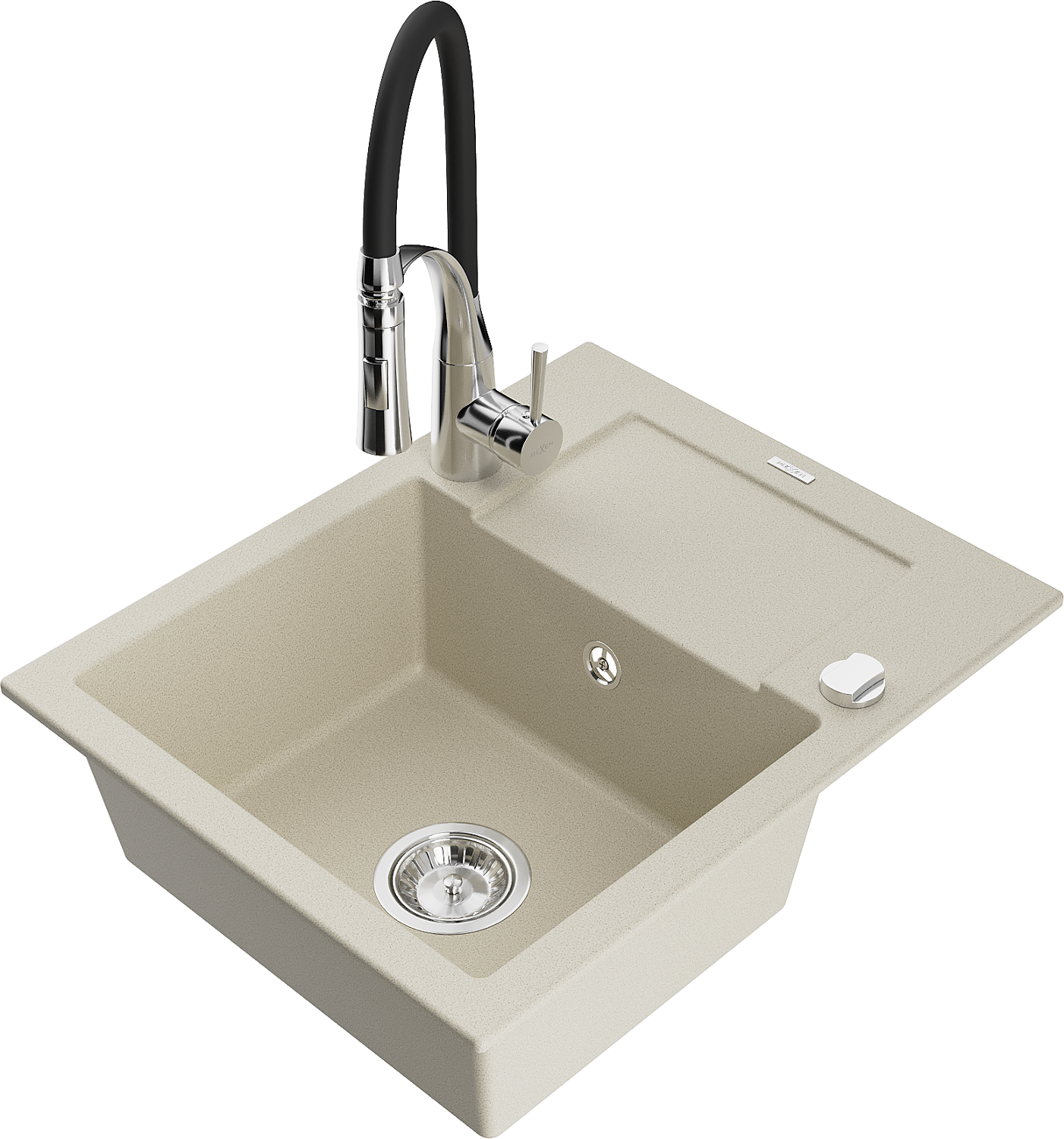 Mexen Enzo Granitspüle 1-Becken mit Abtropffläche und Küchenarmatur Aster, beige - 6506-69-73450-07