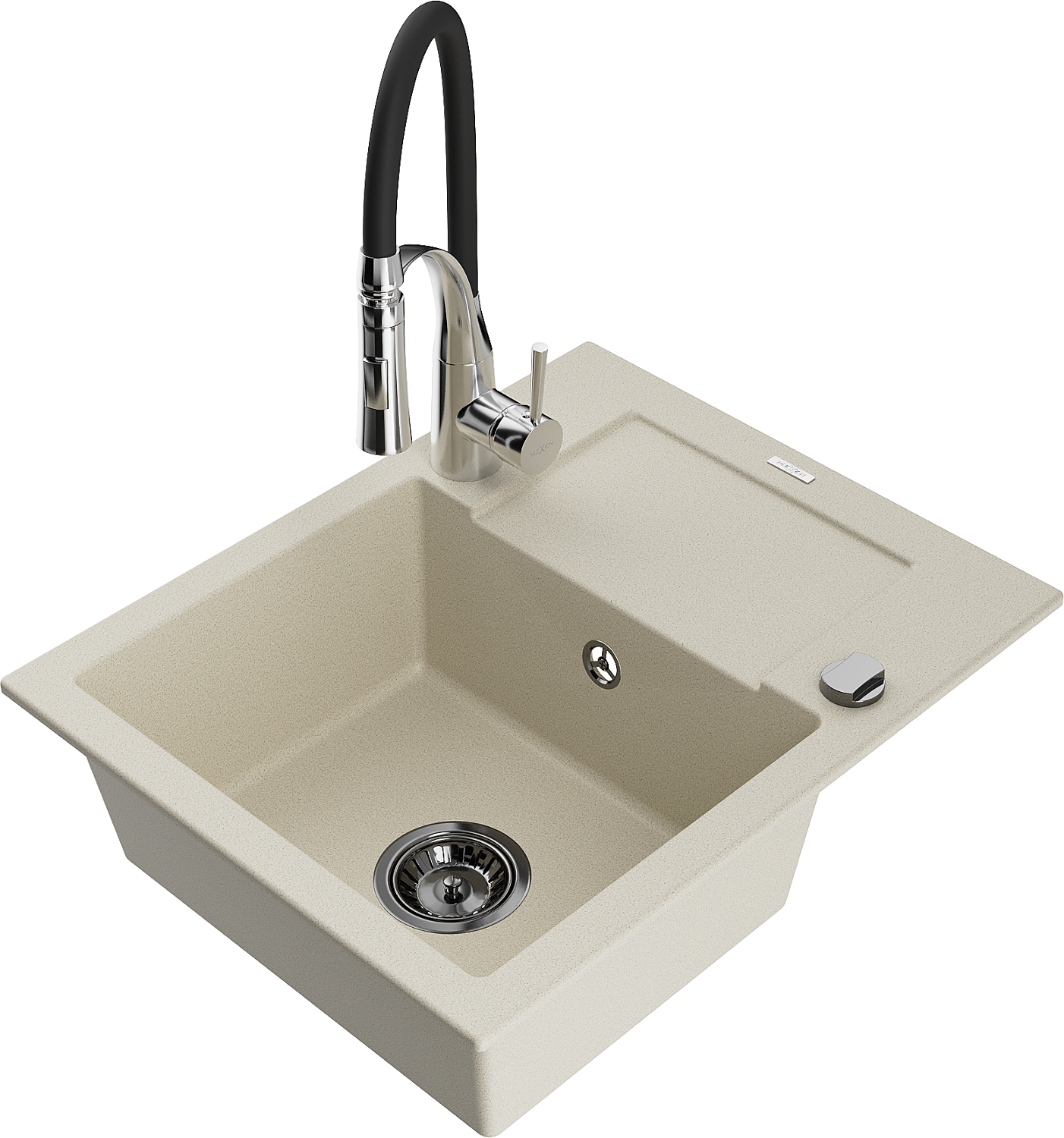 Mexen Enzo Granitspüle 1-Becken mit Abtropffläche und Küchenarmatur Aster, beige - 6506-69-73450-07-B