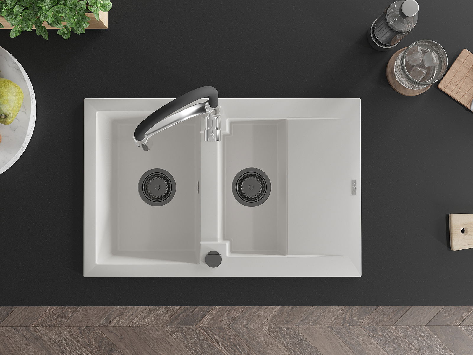 Mexen Gaspar Granitspüle 1,5-Becken mit Abtropffläche und Küchenarmatur Aster, weiß - 6507-20-73450-07-B