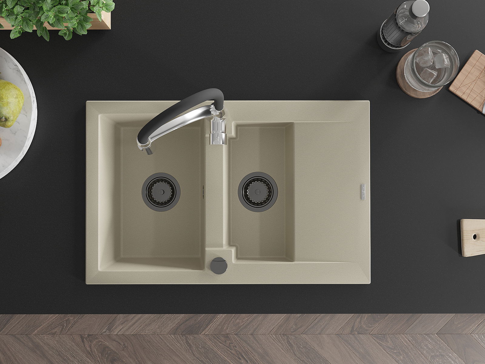 Mexen Gaspar Granitspüle 1,5-beckig mit Abtropffläche und Küchenarmatur Aster, beige - 6507-69-73450-07-B