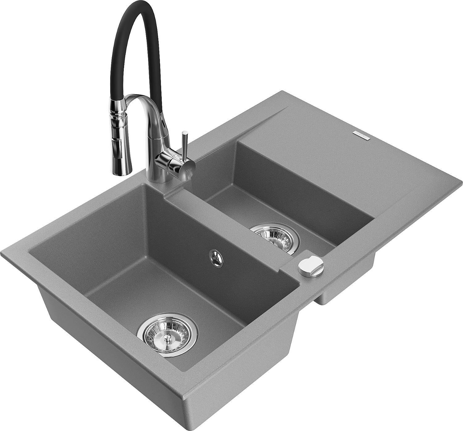 Mexen Gaspar Granitspüle 1,5-Becken mit Abtropffläche und Küchenarmatur Aster, grau - 6507-71-73450-07