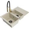 Die Spüle besteht aus hochwertigem Granit. Es ist eine elegante und vor allem praktische Ergänzung zu jeder Küche, unabhängig von ihrem Stil. Hohe Qualität und Granitdauer sorgen für eine langjährige Nutzung.