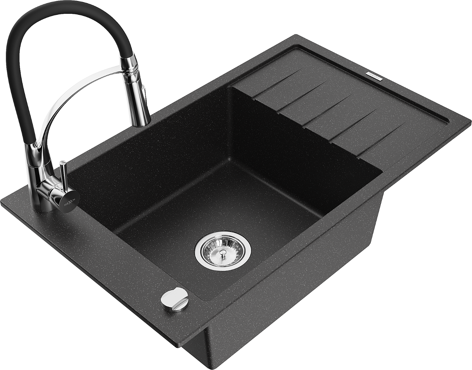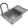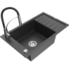 Mexen Elias Granitspüle 1-Becken mit Abtropffläche und Küchenarmatur Aster, schwarz/silber Metallic - 6511-73-73450-07