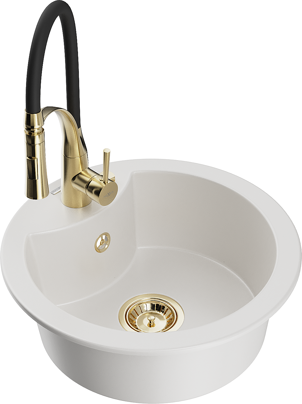 Mexen Diego Granitspüle 1-Becken mit Küchenarmatur Aster, weiß - 6512-20-73450-57-G