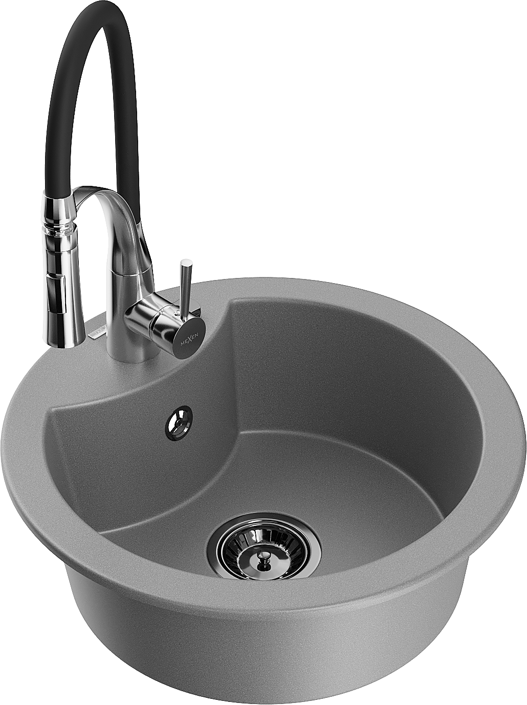 Mexen Diego Granitspüle 1-Becken mit Küchenarmatur Aster, grau - 6512-71-73450-07-B