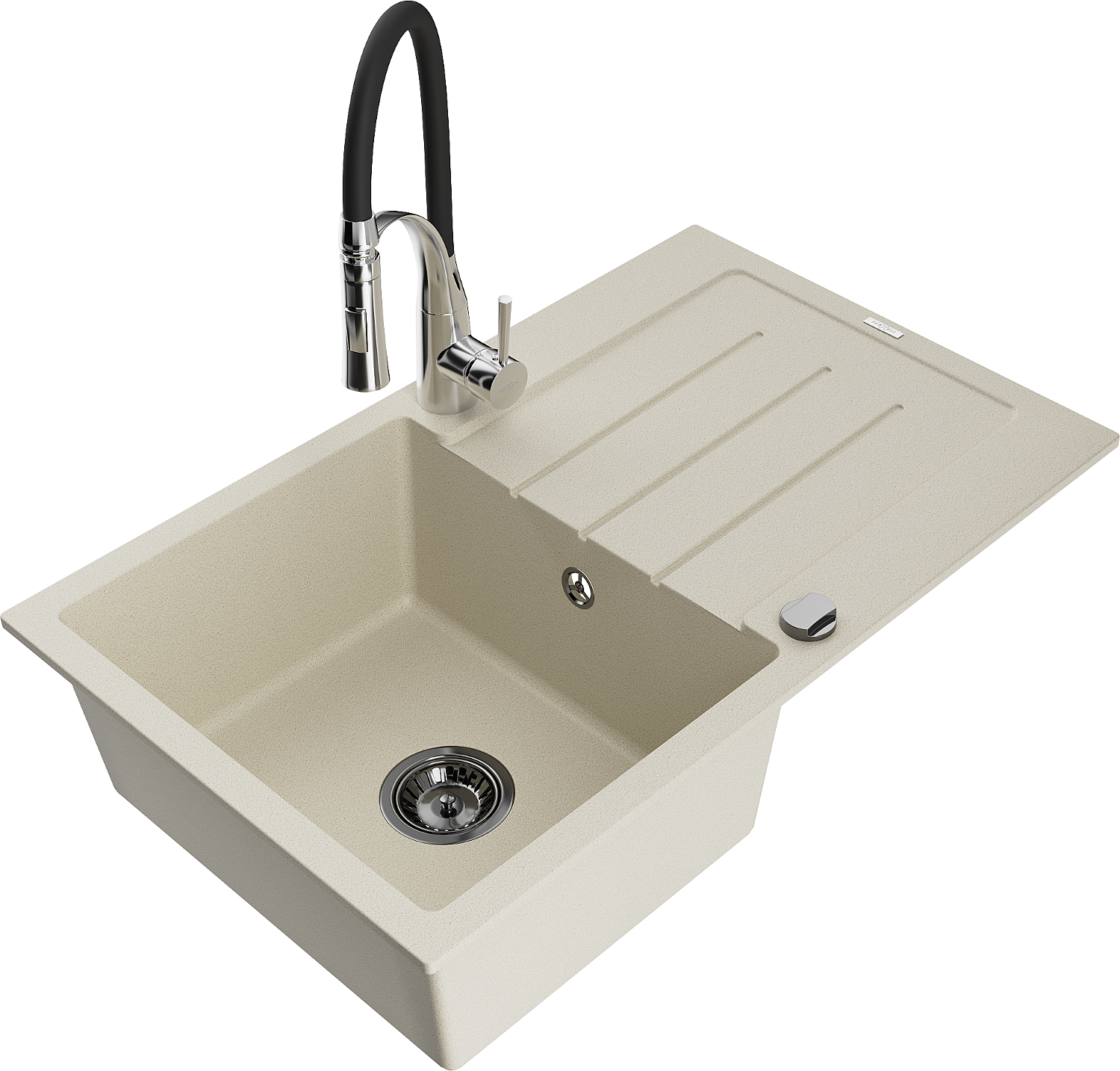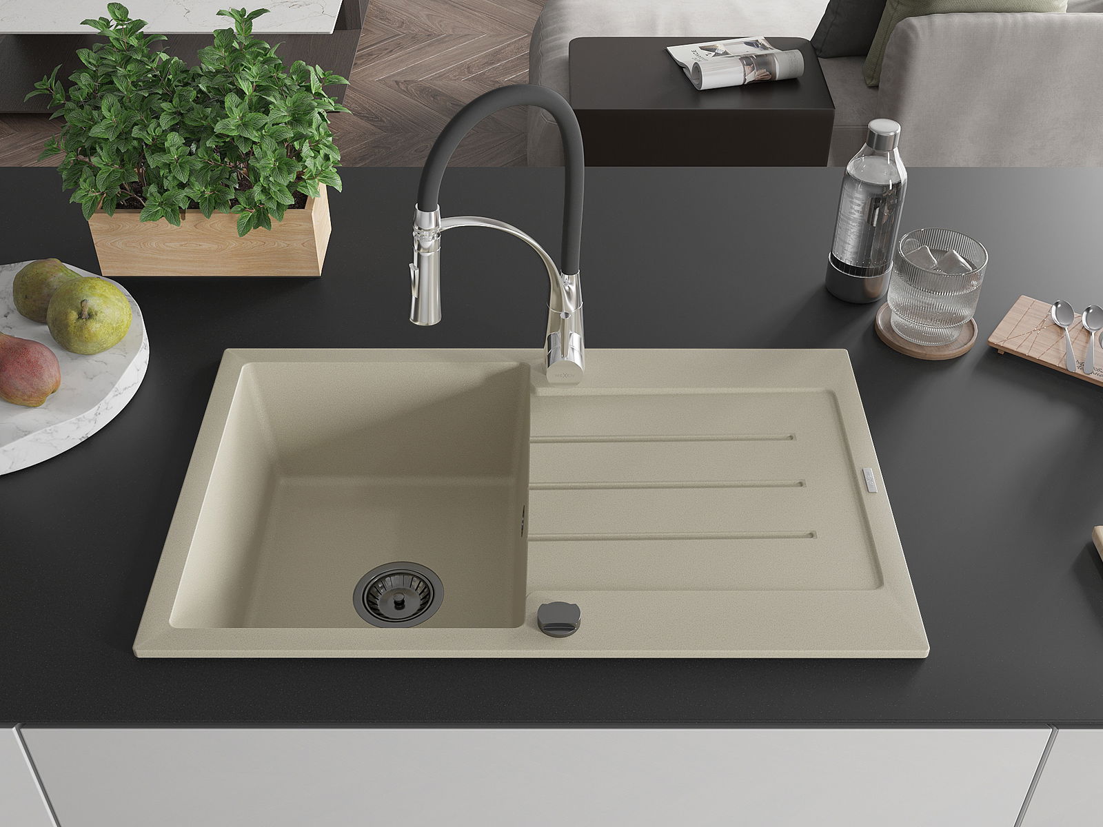 Mexen Bruno Granitspüle 1-Becken mit Abtropffläche und Küchenarmatur Aster, beige - 6513-69-73450-07-B