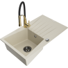 Die Spüle besteht aus hochwertigem Granit. Es ist eine elegante und vor allem praktische Ergänzung zu jeder Küche, unabhängig von ihrem Stil. Hohe Qualität und Granitdauer sorgen für eine langjährige Nutzung.