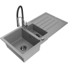 Die Spüle besteht aus hochwertigem Granit. Es ist eine elegante und vor allem praktische Ergänzung zu jeder Küche, unabhängig von ihrem Stil. Hohe Qualität und Granitdauer sorgen für eine langjährige Nutzung.