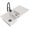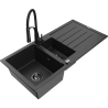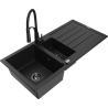 Mexen Andres Granitspüle 1,5-becken mit Abtropffläche und Küchenarmatur Aster, schwarz gesprenkelt - 6515-76-73450-70-B