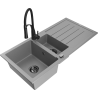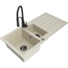 Die Spüle besteht aus hochwertigem Granit. Es ist eine elegante und vor allem praktische Ergänzung zu jeder Küche, unabhängig von ihrem Stil. Hohe Qualität und Granitdauer sorgen für eine langjährige Nutzung.