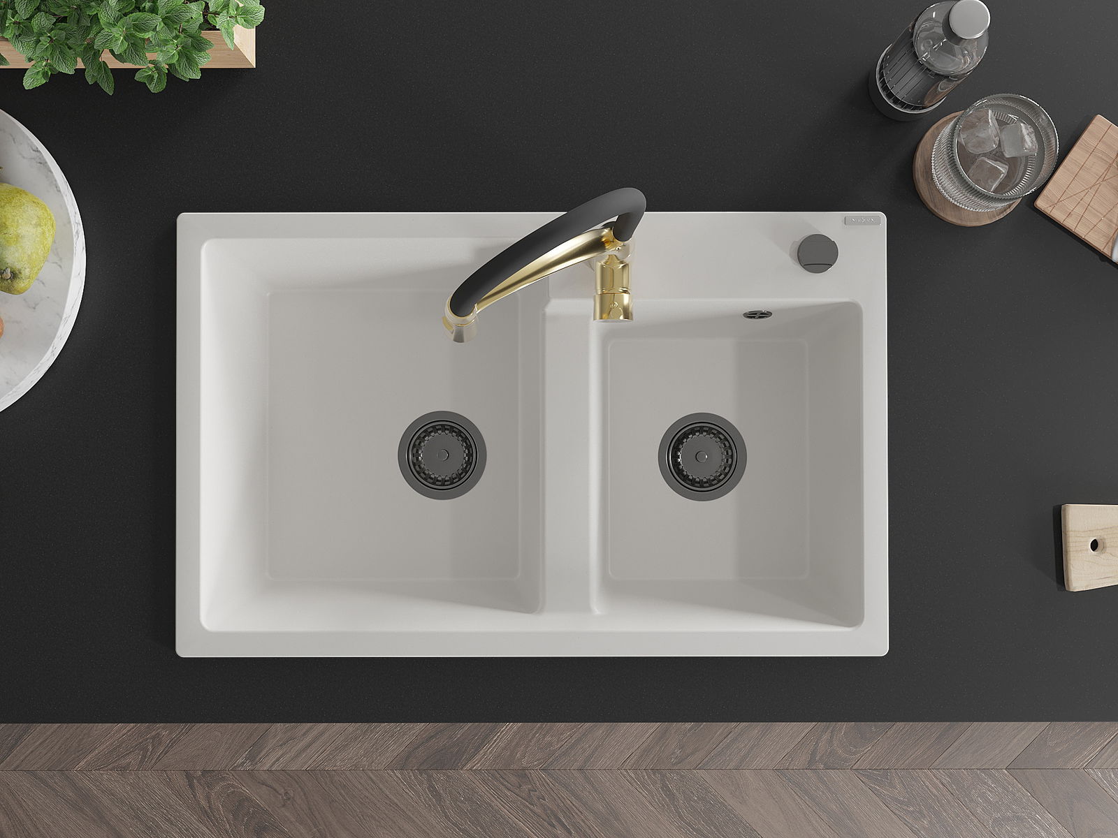 Mexen Tomas Granitspüle 2-Komponenten mit Küchenarmatur Aster, weiß - 6516-20-73450-57-B