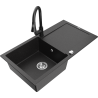 Mexen Leo Granitspüle 1-Becken mit Abtropffläche und Küchenarmatur Elia, grau - 6501-71-670101-71