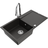 Mexen Leo Granitspüle 1-becken mit Abtropffläche und Küchenarmatur Elia, schwarz gesprenkelt - 6501-76-670101-00