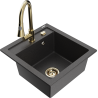 Die Spüle besteht aus hochwertigem Granit. Es ist eine elegante und vor allem praktische Ergänzung zu jeder Küche, unabhängig von ihrem Stil. Hohe Qualität und Granitdauer sorgen für eine langjährige Nutzung.