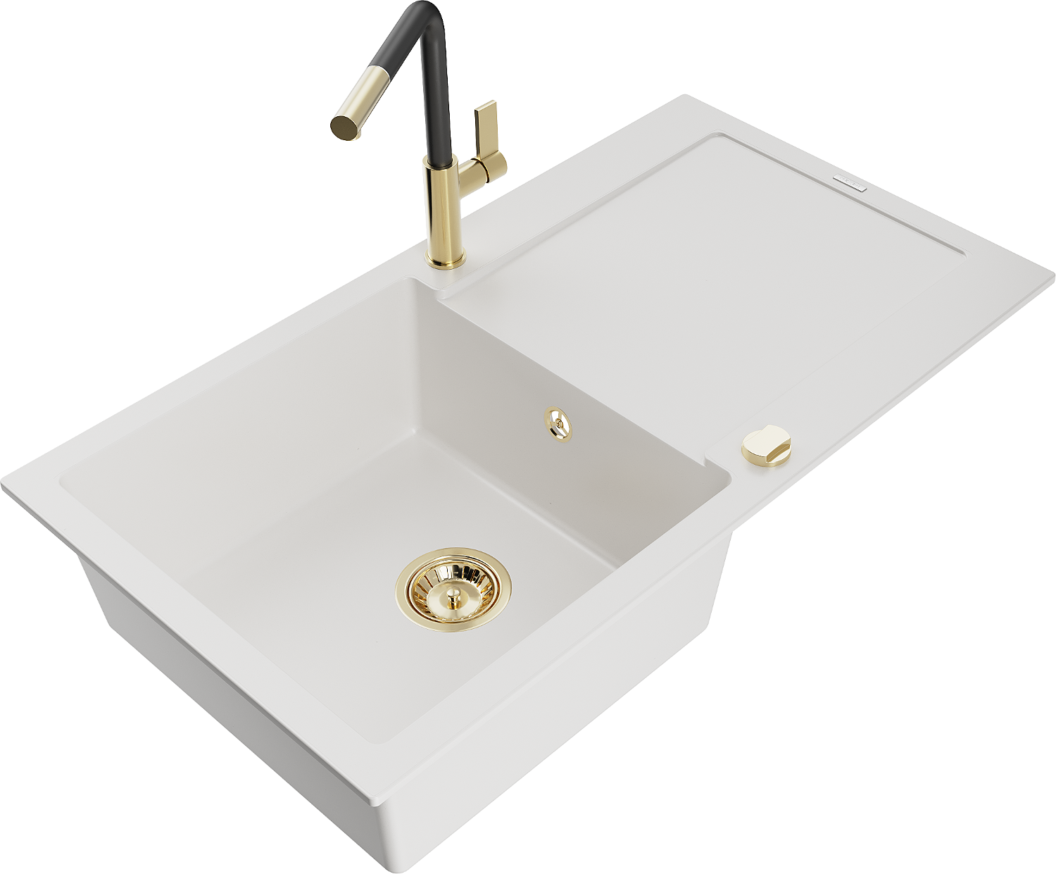 Mexen Leo Granitspüle 1-beckig mit Abtropffläche und Küchenarmatur Flora, weiß - 6501-20-670401-57-G