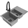 Die Spüle besteht aus hochwertigem Granit. Es ist eine elegante und vor allem praktische Ergänzung zu jeder Küche, unabhängig von ihrem Stil. Hohe Qualität und Granitdauer sorgen für eine langjährige Nutzung.