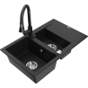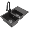 Mexen Gaspar Granitspüle 1,5-Kammer mit Abtropffläche und Küchenarmatur Elia, schwarz/silber metallic - 6507-73-670101-70