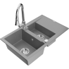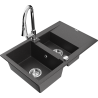 Die Spüle besteht aus hochwertigem Granit. Es ist eine elegante und vor allem praktische Ergänzung zu jeder Küche, unabhängig von ihrem Stil. Hohe Qualität und Granitdauer sorgen für eine langjährige Nutzung.