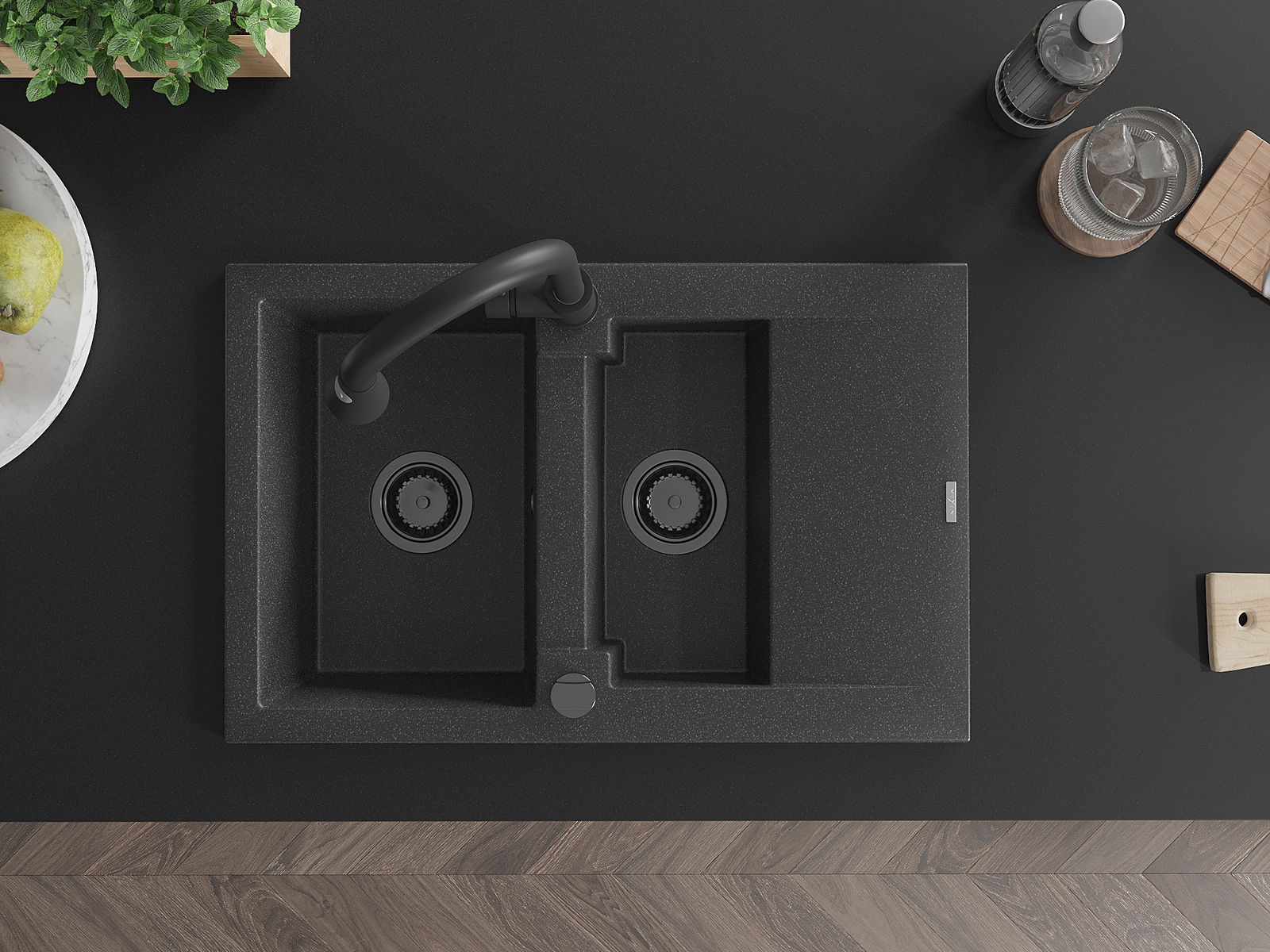 Dank des universellen Montagesystems ist die Spüle reversibel und der Abfluss kann links oder rechts auf der Theke montiert werden. Auf diese Weise können Sie die Seite einfach an Ihre Bedürfnisse und Bedingungen einstellen.