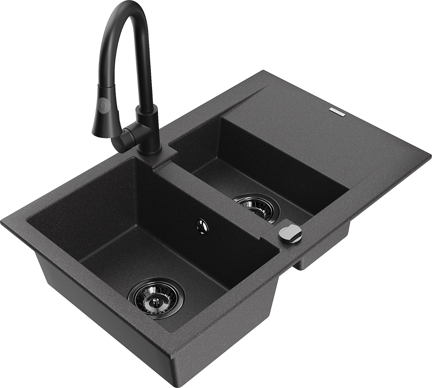 Mexen Gaspar Granitspüle 1,5-kommerzig mit Abtropffläche und Küchenarmatur Elia, schwarz gesprenkelt - 6507-76-670101-70-B