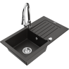 Mexen Pablo Granitspüle 1-beckig mit Abtropffläche und Küchenarmatur Elia, schwarz/silber Metallic - 6510-73-670101-00