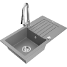 Die Spüle besteht aus hochwertigem Granit. Es ist eine elegante und vor allem praktische Ergänzung zu jeder Küche, unabhängig von ihrem Stil. Hohe Qualität und Granitdauer sorgen für eine langjährige Nutzung.