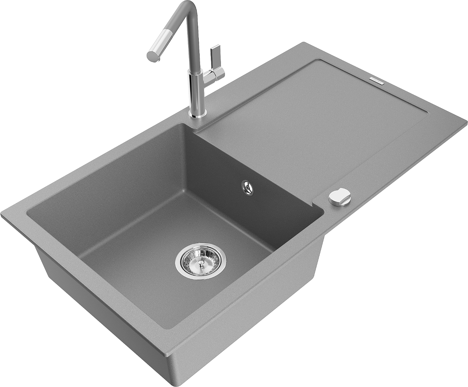 Mexen Leo Granitspüle 1-Becken mit Abtropffläche und Küchenarmatur Flora, grau - 6501-71-670401-06