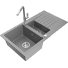 Die Spüle besteht aus hochwertigem Granit. Es ist eine elegante und vor allem praktische Ergänzung zu jeder Küche, unabhängig von ihrem Stil. Hohe Qualität und Granitdauer sorgen für eine langjährige Nutzung.