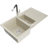 Mexen Matias Granitspüle 1,5-Becken mit Abtropffläche und Küchenarmatur Flora, weiß - 6502-20-670401-07