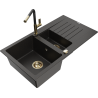 Die Spüle besteht aus hochwertigem Granit. Es ist eine elegante und vor allem praktische Ergänzung zu jeder Küche, unabhängig von ihrem Stil. Hohe Qualität und Granitdauer sorgen für eine langjährige Nutzung.