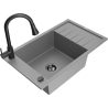 Mexen Elias Granitspüle 1-Becken mit Abtropffläche und Küchenarmatur Elia, schwarz/silber metallic - 6511-73-670101-70-B