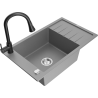 Mexen Elias Granitspüle 1-beckig mit Abtropffläche und Küchenarmatur Elia, schwarz/silber metallic - 6511-73-670101-70
