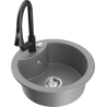 Die Spüle besteht aus hochwertigem Granit. Es ist eine elegante und vor allem praktische Ergänzung zu jeder Küche, unabhängig von ihrem Stil. Hohe Qualität und Granitdauer sorgen für eine langjährige Nutzung.