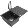 Die Spüle besteht aus hochwertigem Granit. Es ist eine elegante und vor allem praktische Ergänzung zu jeder Küche, unabhängig von ihrem Stil. Hohe Qualität und Granitdauer sorgen für eine langjährige Nutzung.