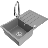 Die Spüle besteht aus hochwertigem Granit. Es ist eine elegante und vor allem praktische Ergänzung zu jeder Küche, unabhängig von ihrem Stil. Hohe Qualität und Granitdauer sorgen für eine langjährige Nutzung.