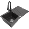 Mexen Cesar Granitspüle 1-Becken mit Abtropffläche und Küchenarmatur Elia, schwarz - 6514-77-670101-70