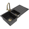 Die Spüle besteht aus hochwertigem Granit. Es ist eine elegante und vor allem praktische Ergänzung zu jeder Küche, unabhängig von ihrem Stil. Hohe Qualität und Granitdauer sorgen für eine langjährige Nutzung.